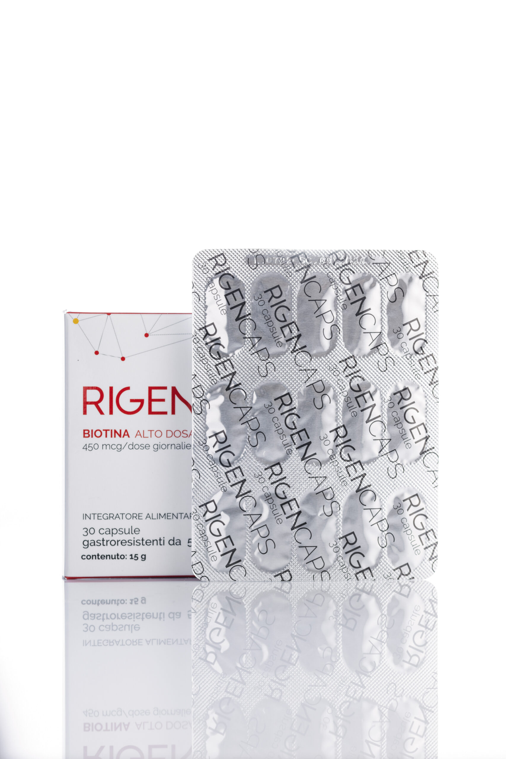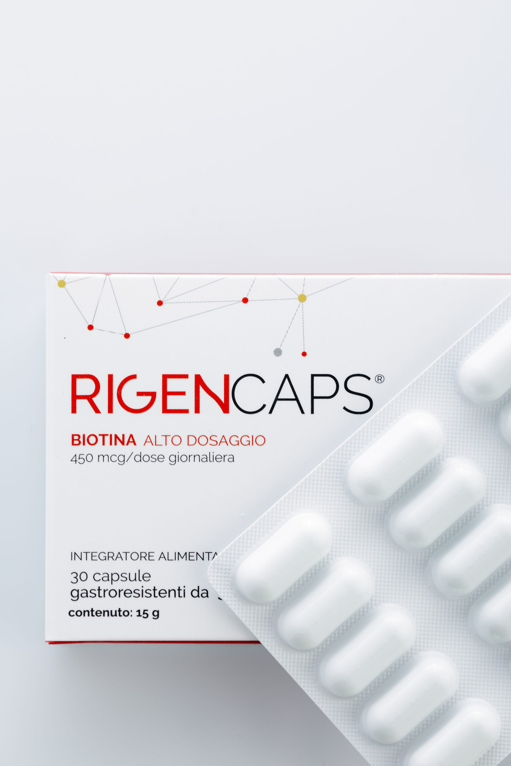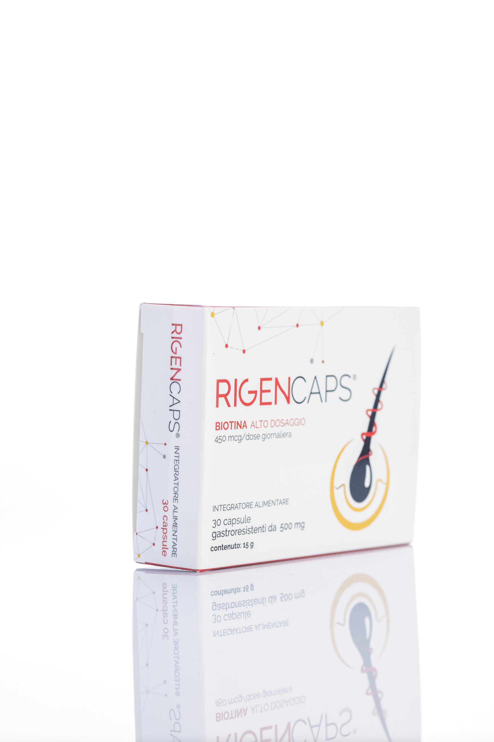 Rigen Caps® è un integratore alimentare specifico per il benessere dei capelli, formulato con biotina ad alto dosaggio (450 mcg), estratto di bamboo ricco di silice, MSM, zinco, ferro e vitamine del gruppo B